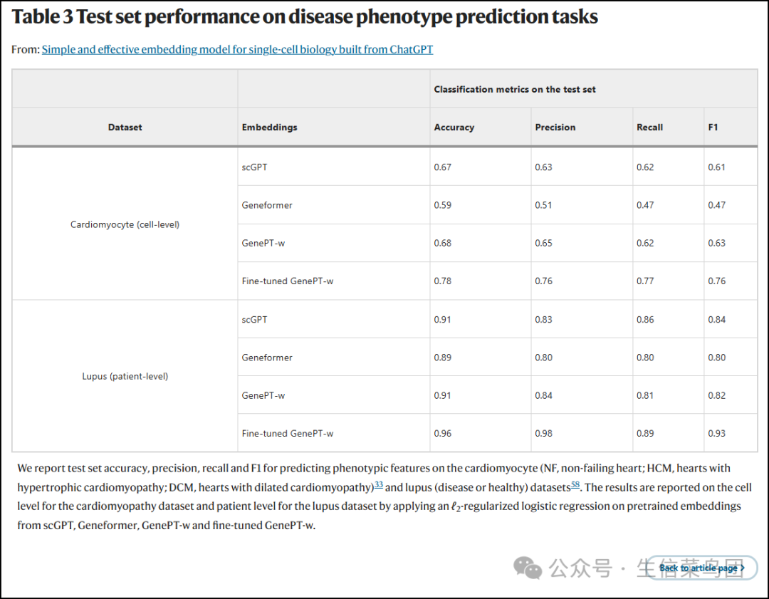 - 相比之下,Theodoris等人报告的Geneformer结果是基于一个经过微调的变压器模型。