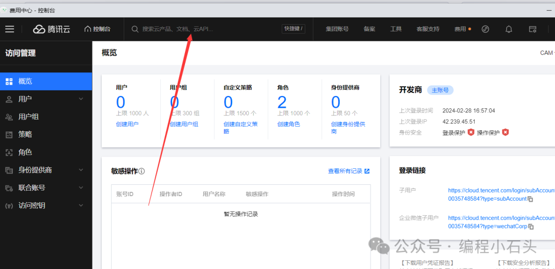然后可以看到最上面有一个搜索框,我们最主要的就是通过这个搜索框进入到旧版的云开发控制台