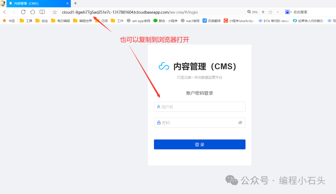 有的同学可能是如下图,其实都一样,我们在登录旧版cms之前,都需要先给云开发绑定下weixin
