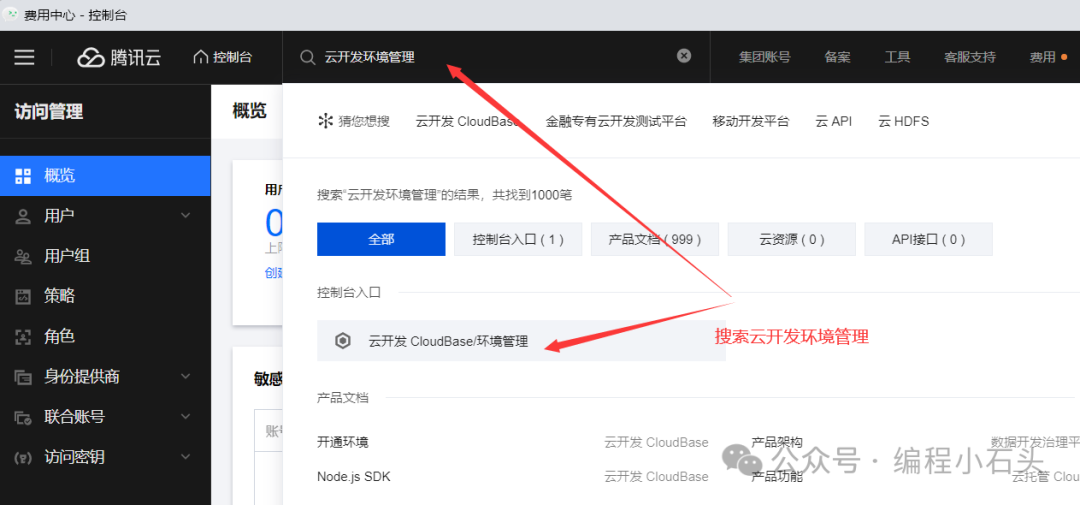在搜索框里搜索 云开发环境管理 然后通过这个入口进入旧版云开发控制台