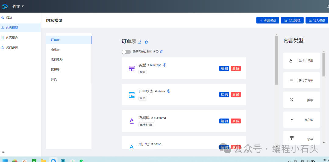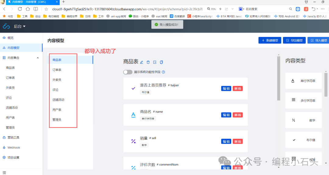 我们开通好旧版以后,操作和之前一样。还是直接导入内容模型(数据表)就可以了