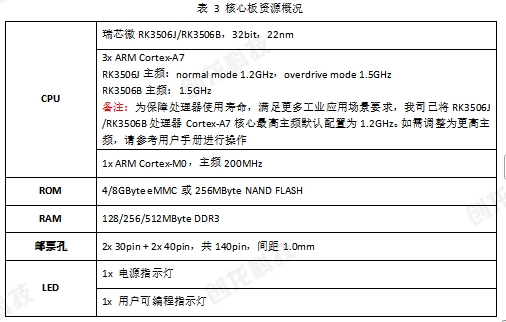 SOM-TL3506核心板板载CPU、ROM、RAM、晶振、电源、LED等硬件资源,并通过邮票孔连接方式引出IO。核心板硬件资源、引脚说明、电气特性、机械尺寸、底板设计注意事项等详细内容,请查阅《SOM-TL3506工业核心板硬件说明书》。