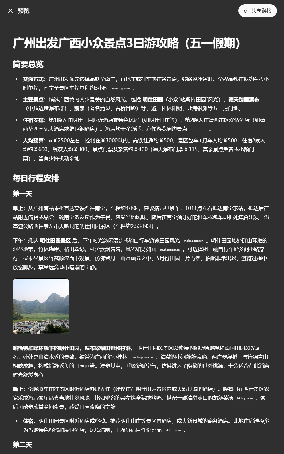 五一假期快要到了,可以直接用Deep Research帮我们制定一个旅游计划: