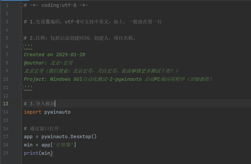 # 1.先设置编码,utf-8可支持中英文,如上,一般放在第一行