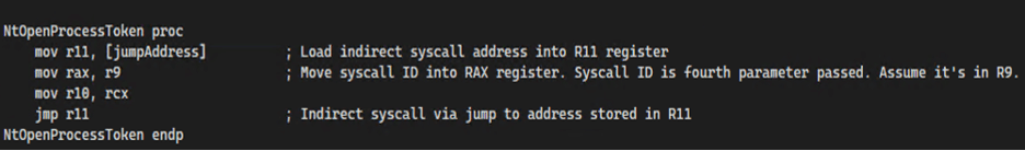 间接系统调用是一种常见的防御规避技术,它指的是恶意软件设计成不使用标准库函数或直接系统调用指令直接调用系统调用。相反,恶意软件会通过中间步骤执行系统调用,通常涉及代码混淆或重定向。这种方法可能涉及操纵函数指针、使用内联汇编或利用其他形式的代码间接调用,以一种不易被标准检测机制识别的方式调用系统调用。
