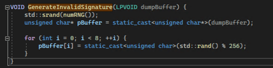 在将转储文件写入磁盘之前,LetMeowIn 会运行一个名为 GenerateInvalidSignature 的函数来破坏文件的 MDMP 签名。这会导致文件无法被常用的分析工具分析,从而无法确认转储文件是否包含凭据。LetMeowIn 项目包含一个 Python 脚本,该脚本可以恢复正确的文件签名,从而可以使用 Mimikatz 等工具提取凭据。