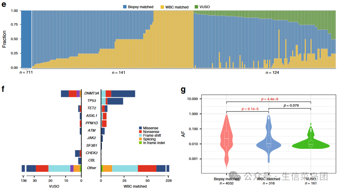 尽管这种突变过滤策略在很大程度上避免了cfDNA中低AF改变的干扰,但WBC的有限测序深度引起了人们的担忧,即一些CH改变可能会逃避WBC筛选,从而使整体cfDNA结果产生偏差。