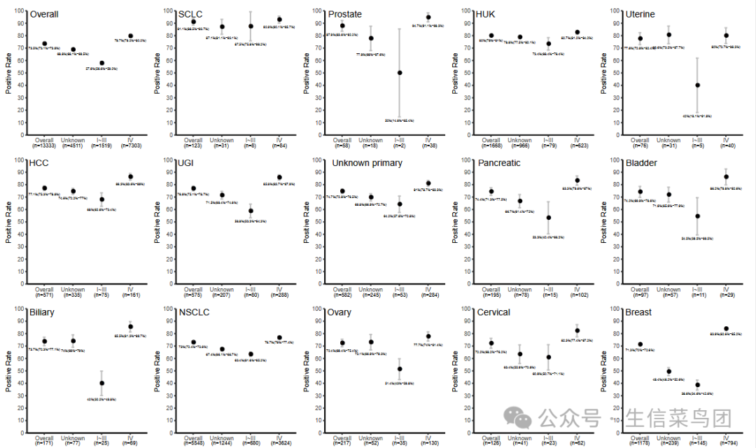 ctDNA检测的总体灵敏度为73.5%。ctDNA的可检测性因癌症类型而异。