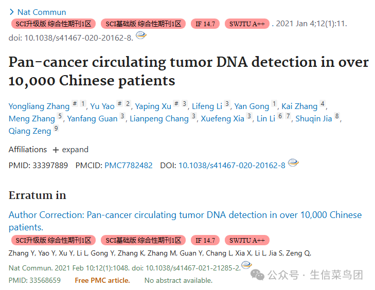 背景:尽管近年来发表了许多与ctDNA相关的研究,但仍然缺乏对不同癌症类型的ctDNA的大规模分析。