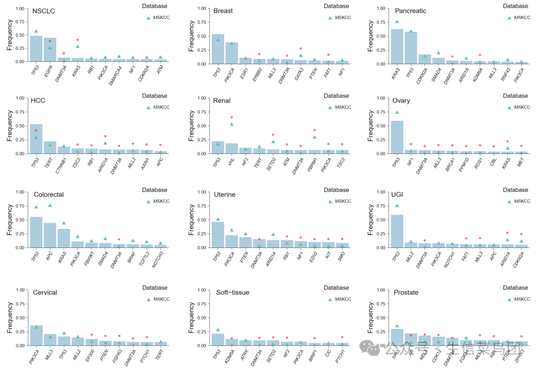 MSKCC数据集,使用了涵盖468个基因的特异性测序panel。纳入了60多种癌症类型和10,000名晚期癌症患者