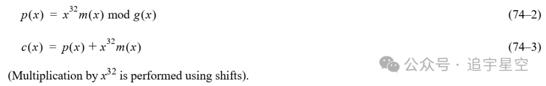 如果信息比特的多项式表示为m(x),则码字c(x)可以按照方程(74-2)和方程(74–3)中给出的系统形式计算。