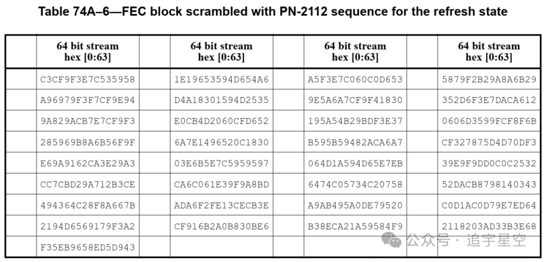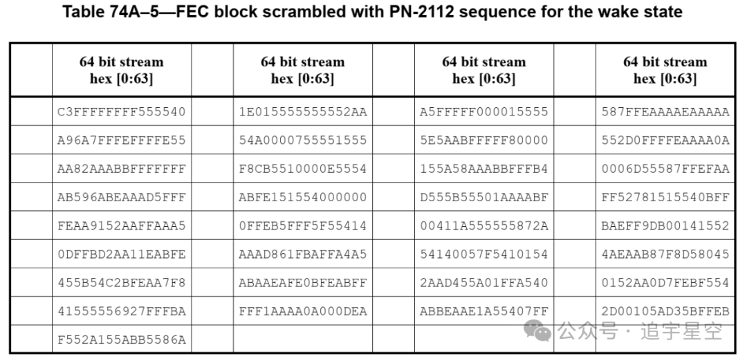 如果支持可选的EEE深度睡眠功能,则第82条(100GBASE-R)PCS子层也会在唤醒状态期间对/I/进行编码,在刷新状态期间对/LI/进行编码,但还会在每个PCS通道中插入快速对齐标记。这导致这两种类型的确定性FEC块中有许多65位字被快速对齐标记替换,因此不匹配“如表74A-5和表74A-6所示的两种确定性模式”。快速FEC块内快速对齐标记的位置对于进入唤醒或刷新状态的给定条目是一致的,但对于后续条目,位置可能会有所不同。快速FEC锁定实现需要考虑对这两种确定性模式的修改。