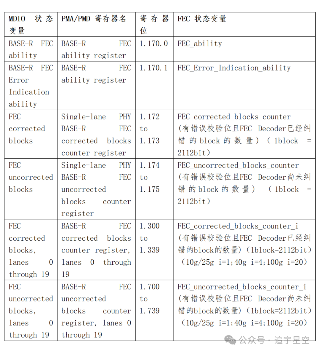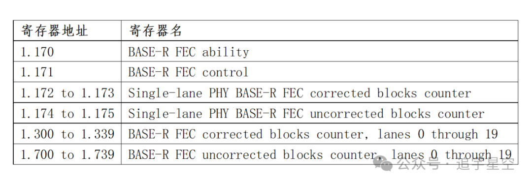 与BASE-R FEC相关的寄存器集中在C45寄存器DeviceID=1(PMA/PMD)里。下面做一个简单的介绍。