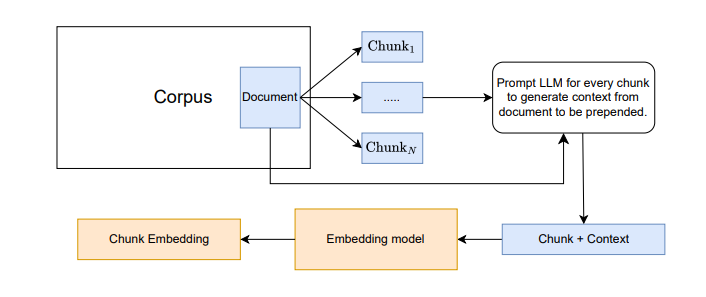 It gives to the model the document and the chunk of text to generate the context to be added to the chunk.