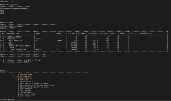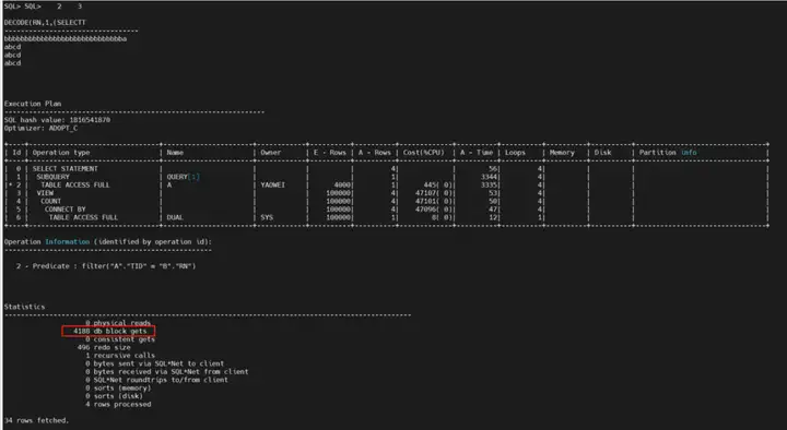 执行简单的 select decode(...) 语句,返回时间异常缓慢;
