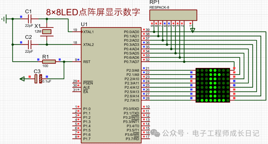 利用51单片机和8*8共阳极点阵显示数字0-8。
