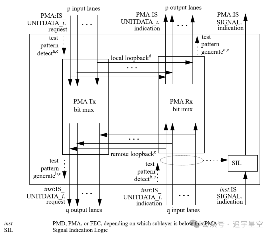 d) 可选测试图案生成、可选测试图案检测、可选本地环回和可选远程环回 的机会取决于PMA子层的具体位置。