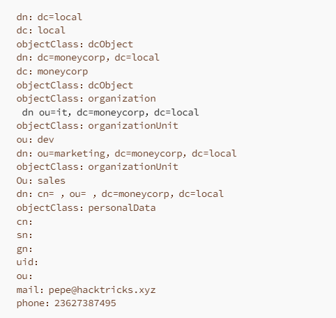 ldapsearch -x -H ldap: // <IP> -D ''- w ''- b "DC=<1_SUBDOMAIN>,DC=<TLD>"