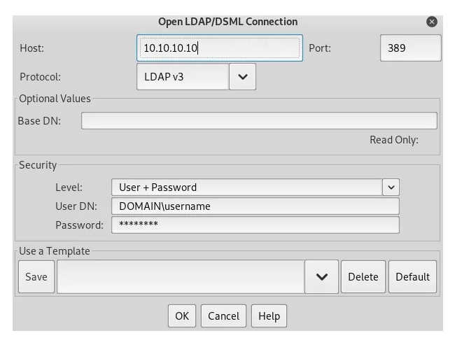 ldapsearch -x -H ldap: // <IP> -D '<DOMAIN>\<用户名>' -w '<密码>' -b "DC=<1_SUBDOMAIN>,DC=<TLD>"