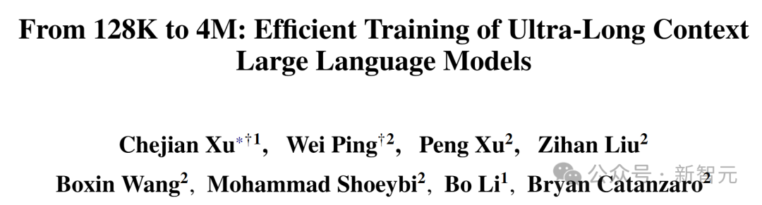 在这项工作中,研究人员提出了一种高效且系统化的训练方法,用于超长上下文语言模型,将上下文窗口扩展到100万、200万和400万个token,同时在标准基准测试中保持了竞争力。