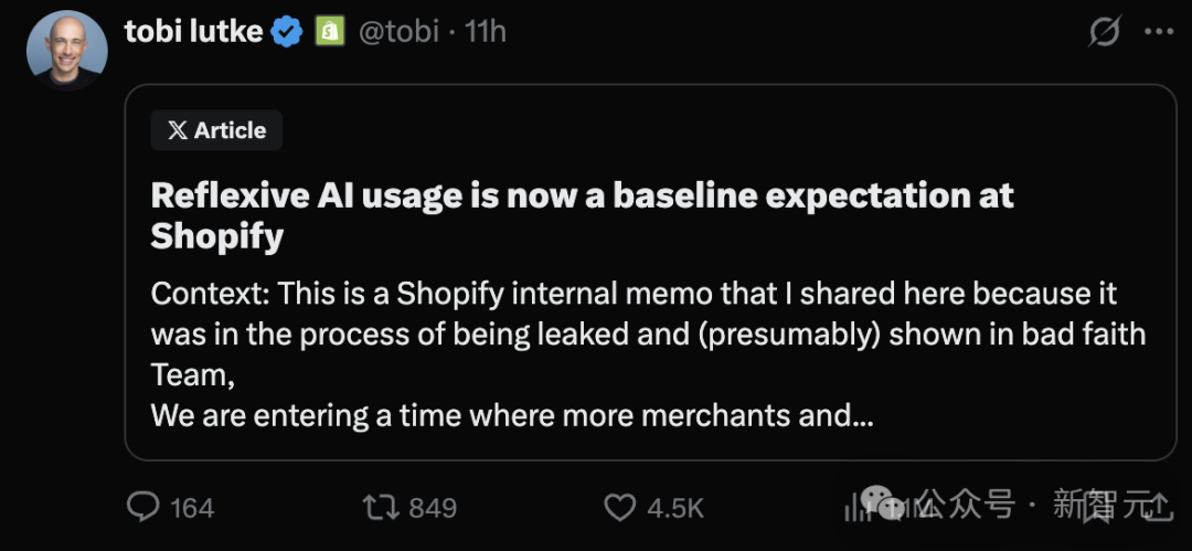 今天,Tobi Lutke决定改变这一点:使用AI不再是建议,而是基本要求,是Shopify的铁律!