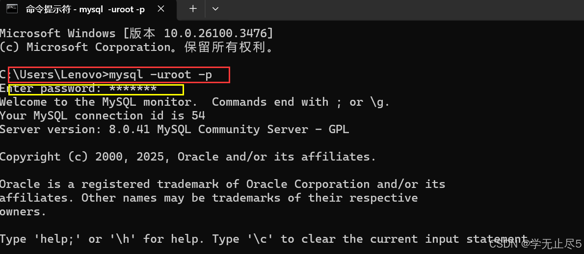 mysql -u 用户名 -p然后输入你的密码,即可成功连接到 MySQL 服务器。