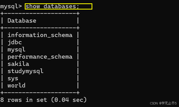 连接到 MySQL 服务器后,我们可以查看我们的数据库。