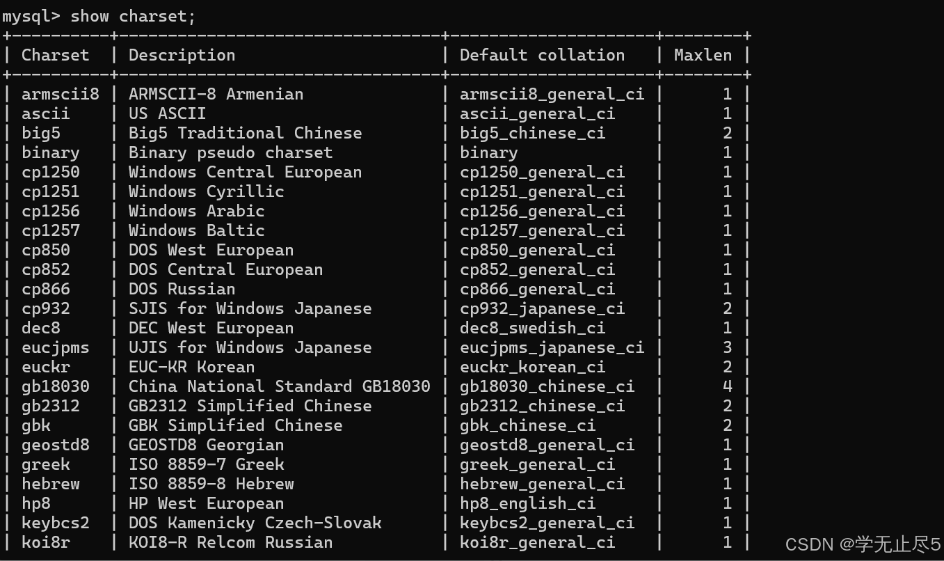MySQL8.0默认的字符集编码是 utf8mb4 ,MySQL5.7默认的字符集是 latin1