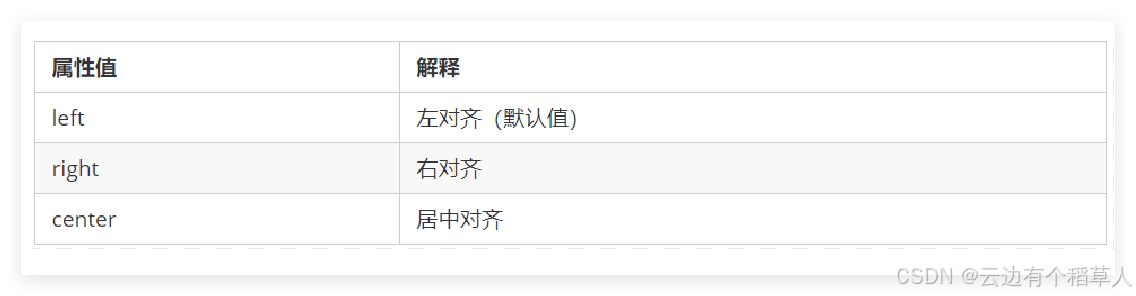 text-align 属性用于设置元素内文本内容的水平对齐方式。