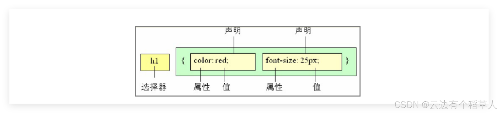 CSS 规则由两个主要的部分构成: 选择器以及一条或多条声明。
