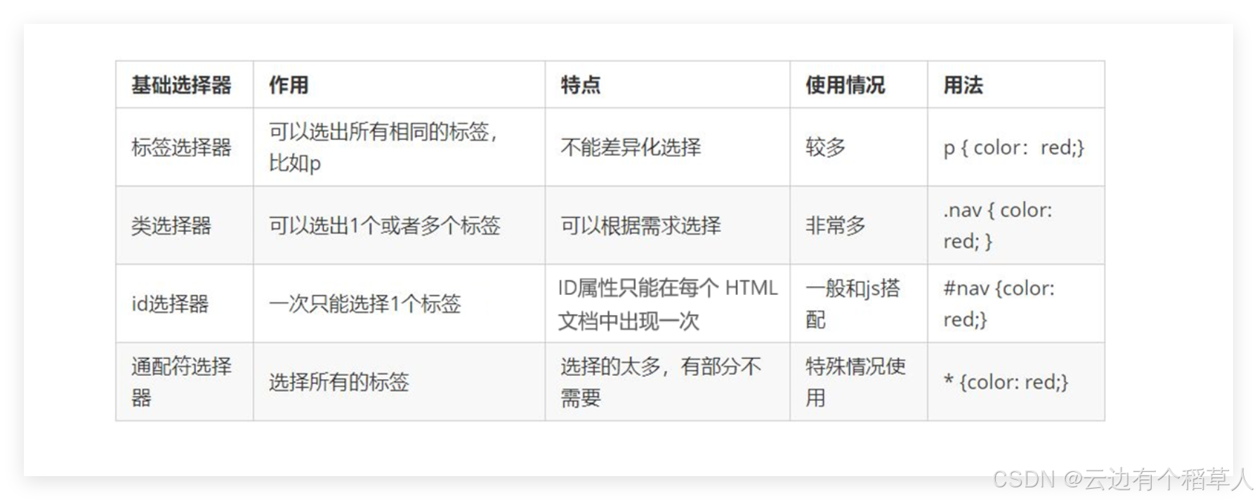 选择器 分为 基础选择器 和 复合选择器 两个大类,我们这里先讲解一下基础选择器。