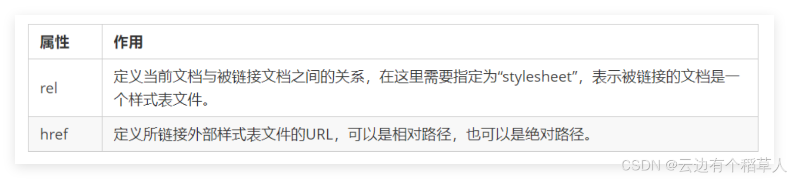 实际开发都是外部样式表。适合于样式比较多的情况。核心是:样式单独写到CSS 文件中,之后把CSS文件引入到 HTML 页面中使用。