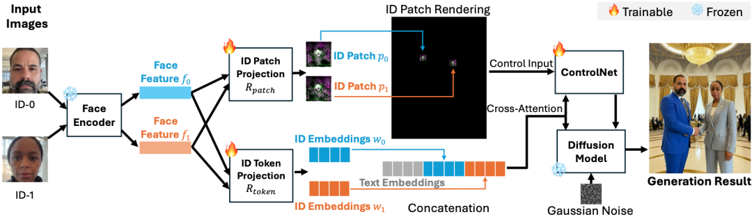 特别地,ID Patch 兼具 “位置标记” 和 “身份锚点” 双重作用:不仅告诉模型 “谁在哪”,也帮助模型从多个 ID Embedding 中,正确选出对应的、包含更丰富细节的身份向量。