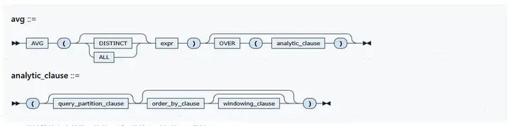 AVG(expr) 用于计算输入表达式在数据集中的平均值。既可以作为聚合函数处理整列数据,也可以作为窗口函数返回分组内的滑动平均。