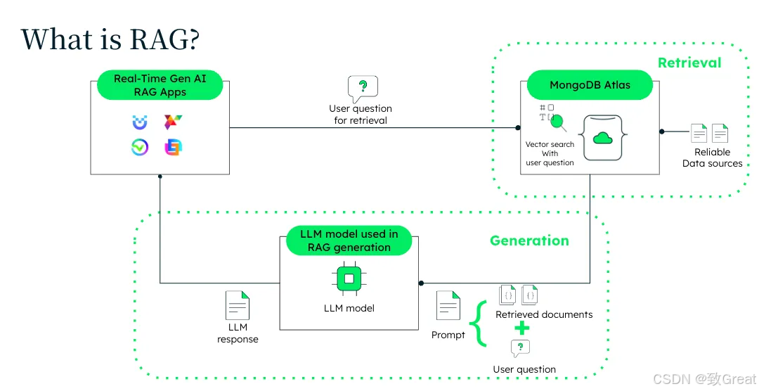 这使得 RAG 成为构建可信 AI 系统的重要技术,特别适用于需要精确、可验证信息的应用场景,如客户支持、医疗、法律和技术文档咨询等领域。