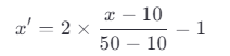 return Arrays.stream(data).map(v -> (v - min) / (max - min) * (newMax - newMin) + newMin).toArray();