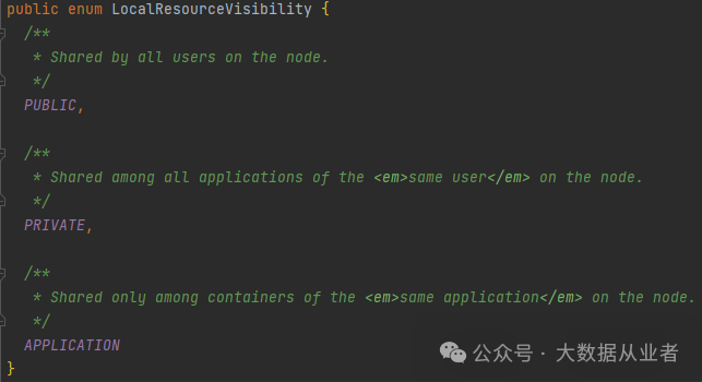 所谓共享即同一nodemanager节点内、共享范围内只缓存一份资源文件。相应源码注释如下: