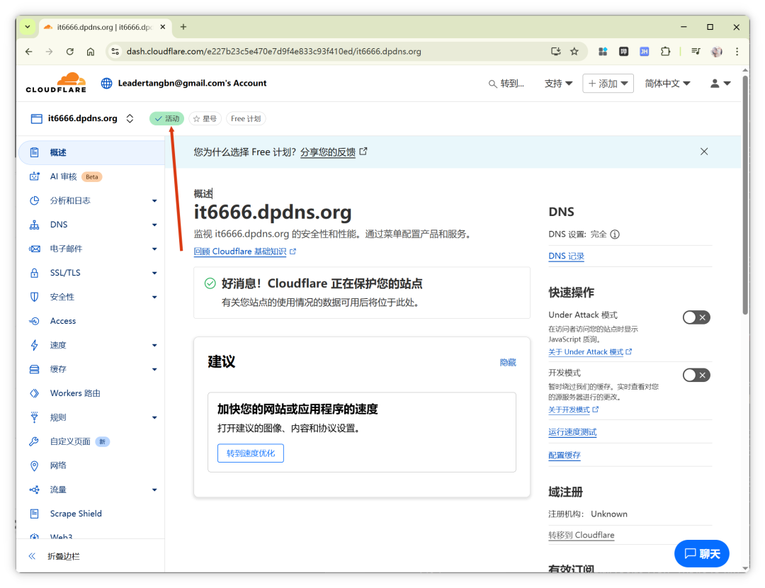 至此,域名已成功托管到 Cloudflare。