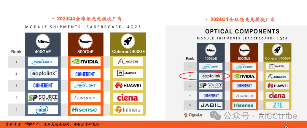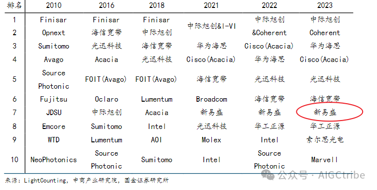 新易盛(SZ:300502)不是光模块企业中规模最大的,2023年全球第七,排名低于中际旭创、华为海思、光迅科技、海信宽带。