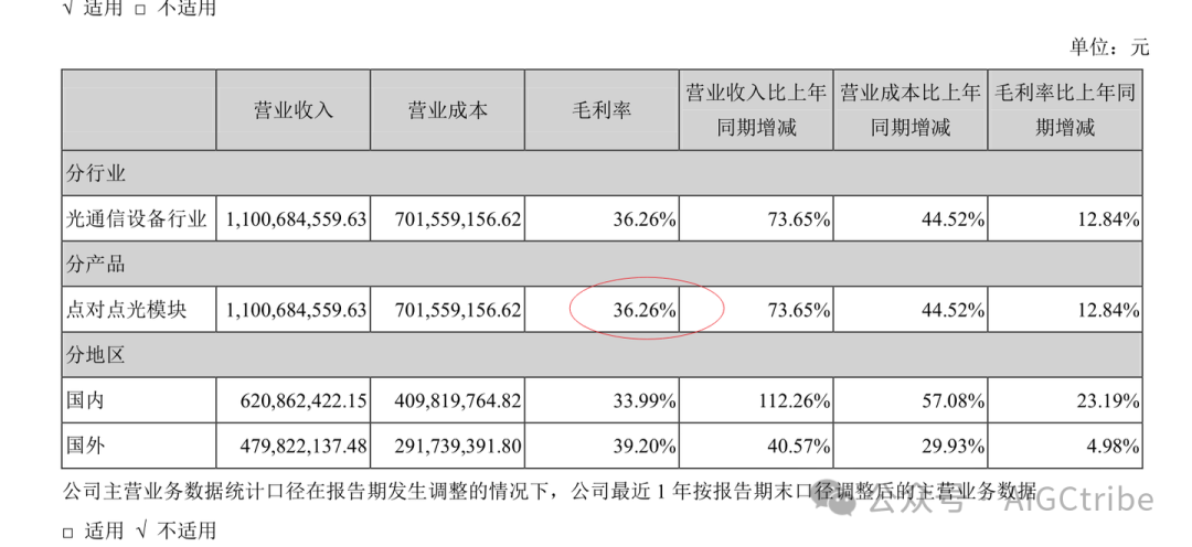 公司国内市场毛利率为33.99%,国外市场毛利率为39%,国外市场比国内高5%左右。此外,相比国内市场,国际市场需求更快发展,且海外客户对高端光模块需求更旺盛(海外毛利率也一般高于国内)。大比例的海外销售使公司能在全球竞争中获取更多高利润业务。公司的高端光模块主要用于云数据中心和算力中心。服务一线大客户意味着订单量大、回款快、议价能力强,也使单个订单贡献高额毛利。