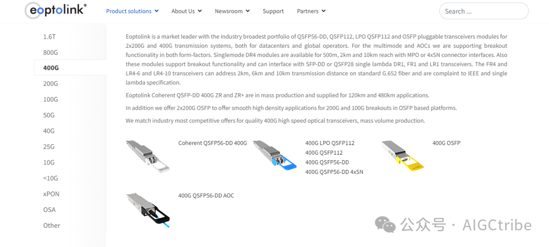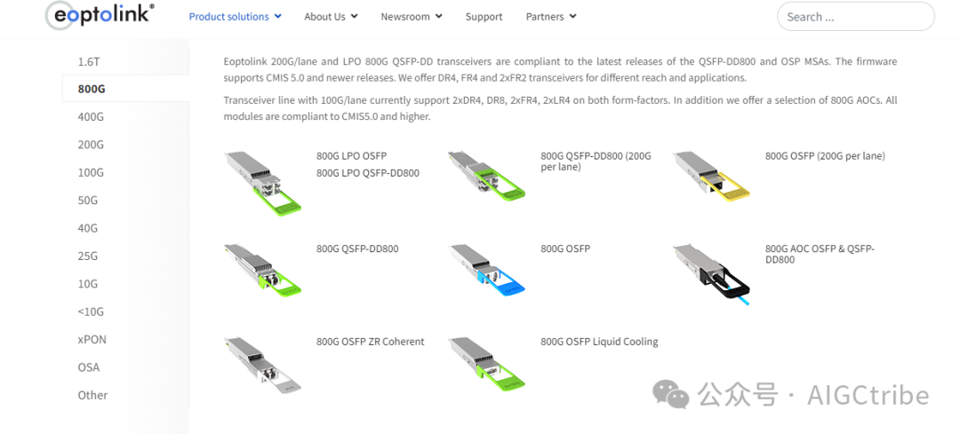 公司官网上展示了2款1.6T光模块产品,8款800G光模块产品,4款400G光模块产品。可见,800G光模块产品已经是公司主要收入来源。