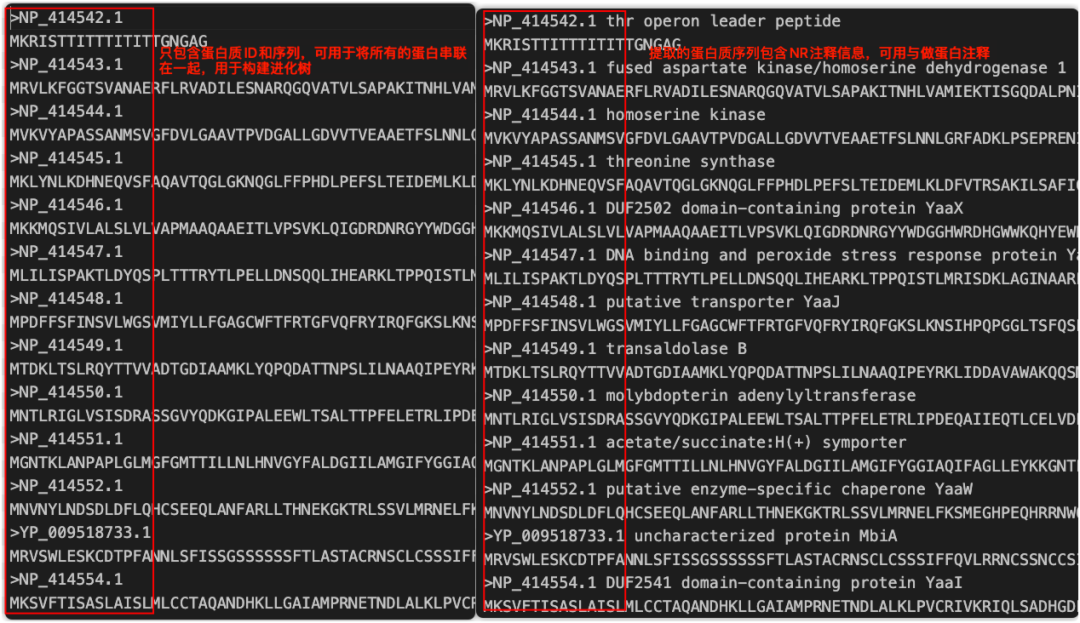 python Gbk_extea_protein.py -g NC_000913.gbk -a T -o NC_000913_protein.faa结果展示
