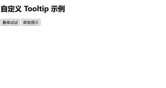<button data-tooltip="<b>多行内容</b><br>支持 HTML" data-tooltip-html="true">高级提示</button>配合模块引用即可使用:
