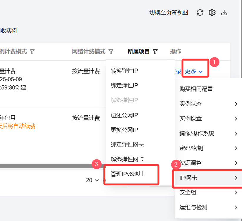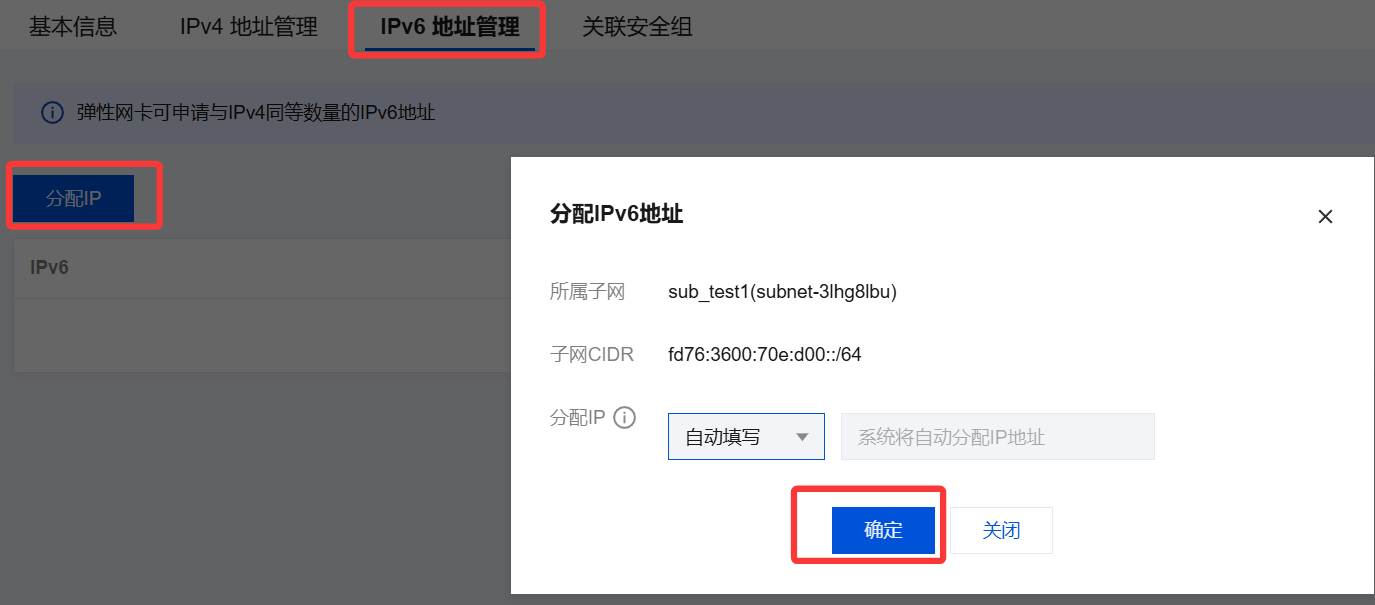 云服务器在购买时未分配 IPv6 地址,可在对应云服务器实例的操作栏下,选择更多 > IP/网卡 > 管理 IPv6 地址,为主网卡分配 IPv6 地址。