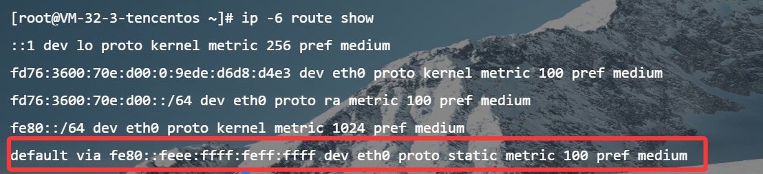 腾讯云IPV6 默认网关:fe80::feee:ffff:feff:ffff