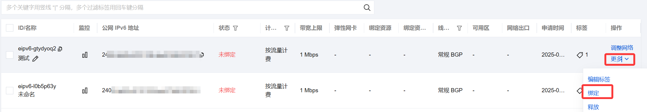 本文演示的是如何开启弹性公网 IPv6并开启公网访问能力,传统弹性公网IPV6不适用。