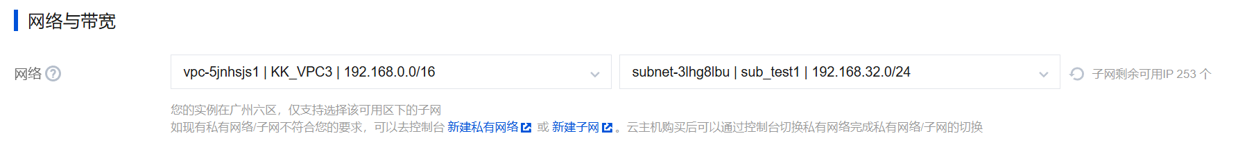 2.服务器的地域要和VPC所在地域一致,子网的可用区要和CVM所在的可用区一致,然后选择VPC和子网