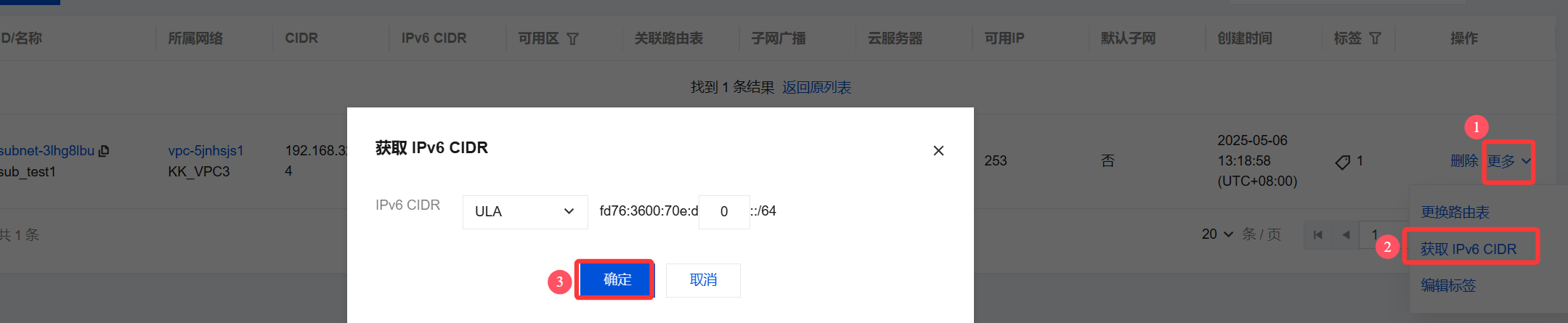 1.在 子网 - 私有网络 - 控制台 找到刚刚开通ULA ipv6 CIDR 的VPC下的子网