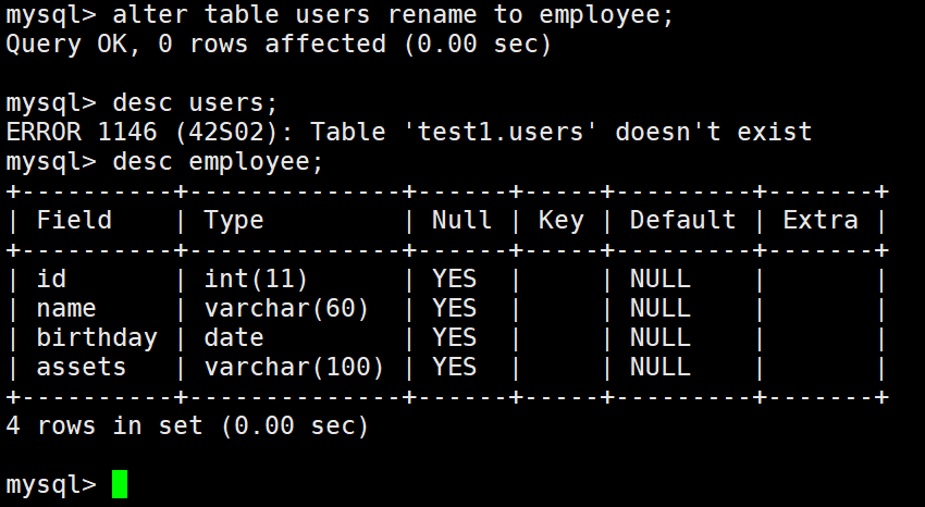 alter table employee change name xingming varchar(60); --新字段需要完整定义