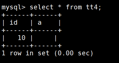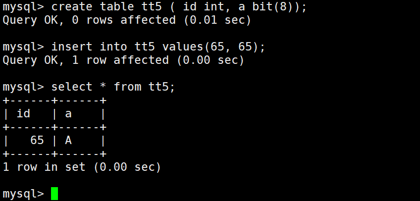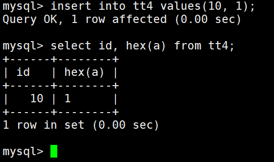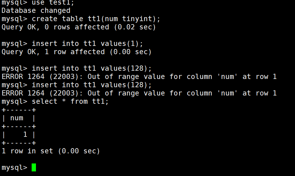 insert into tt2 values(-1); – 无符号,范围是: 0 - 255